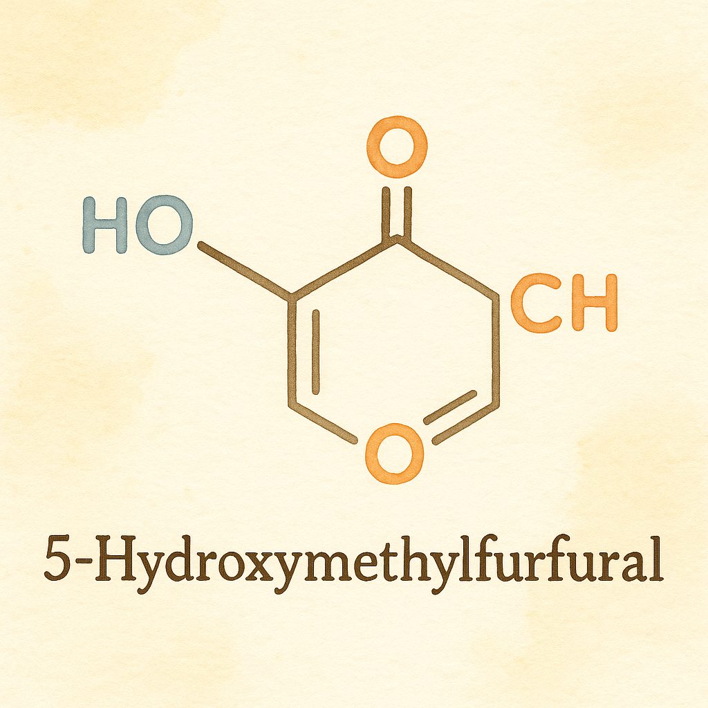 蜂蜜の品質変化を客観的に評価するために用いられるのが、HMF(ヒドロキシメチルフルフラール)という化学物質です。HMFは、メイラード反応や、糖(特に果糖)が酸性条件下で分解される過程で生成されます。もともとはフランスの化学者ルイ・カミーユ・メイヤールによって発見された物質で、蜂蜜以外にも様々な加熱食品に含まれています。