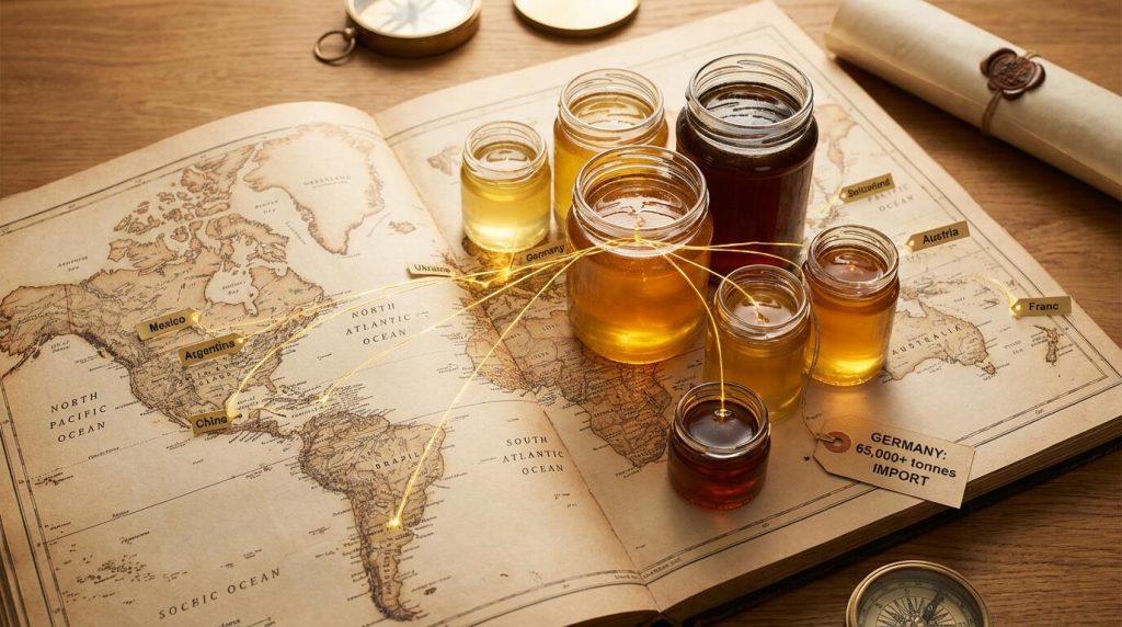 一方、輸出量は年間約1.9万トン程度で、輸入に比べると少ないです。輸入元の主要国はウクライナ、アルゼンチン、メキシコ、中国などで、それらの国から輸入される蜂蜜は欧州の市場供給に大きく寄与しています。